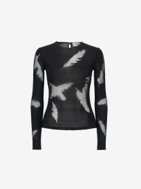 Black viscose silk top detailed with a sheer Feather intarsia. The top features a crew neck and is finished with a keyhole fastening on the back. Product details - Crew neck - Long sleeves - Keyhole fastening - Product code: 798379Q1BAV1000 - Made in Italy