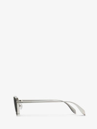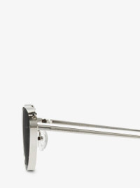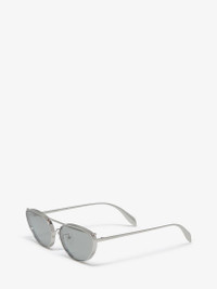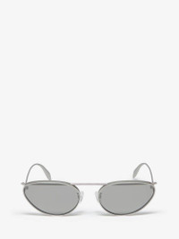 Silver cat-eye sunglasses fitted with flashed silver lenses. The sunglasses feature tonal piercing detailing through the lenses and are finished with a lasered Alexander McQueen signature on the temples. All Alexander McQueen Eyewear is 100% certified UV protective (UVA and UVB rays). Product details - Lenses contain 39% biobased material. - Product code: 769169I33301188 - Made in Japan - Material: Metal