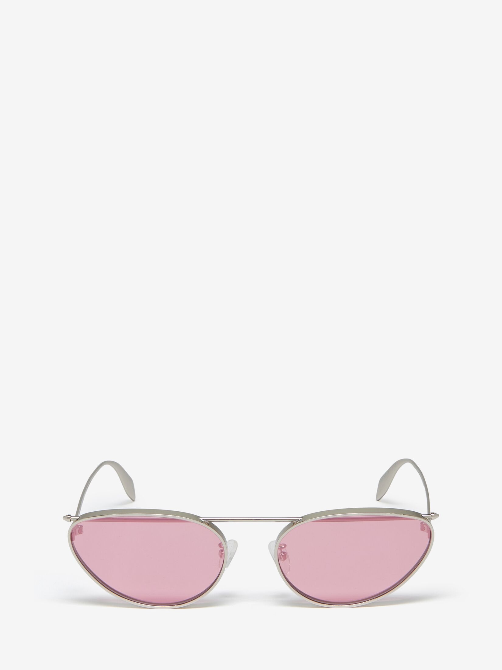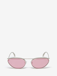 Silver cat-eye sunglasses fitted with flashed pink lenses. The sunglasses feature tonal piercing detailing through the lenses and are finished with a lasered Alexander McQueen signature on the temples.<br><br>All Alexander McQueen Eyewear is 100% certified UV protective (UVA and UVB rays). Product details - Lenses contain 39% biobased material. - Product code: 769169I33301255 - Made in Japan