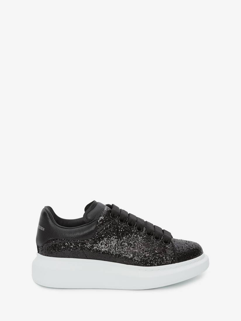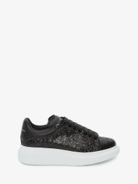 Black glittered calf leather lace-up sneaker with rounded toe and trimmed with black grain leather heel detail. Large flat laces and Alexander McQueen signature on tongue and heel counter. Oversized rubber sole. To lessen our environmental impact and to reduce cotton consumption, we will no longer be providing a dust bag with our sneakers. Product details - Please note, standard Alexander McQueen packaging is not available on employee sale purchases. - All sales are final and may not be returned or exchanged. Some products may present slight imperfections and all products are sold on an “as is”, final sale basis. - All products purchased by the employees are strictly personal and may not be resold. Failure to comply with the Policy will result in serious disciplinary measures. - Product code: 553771W4EY41000 - Made in Italy - Material: Calfskin