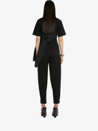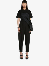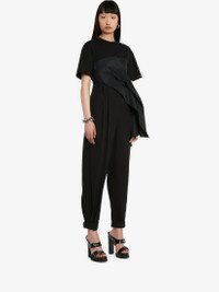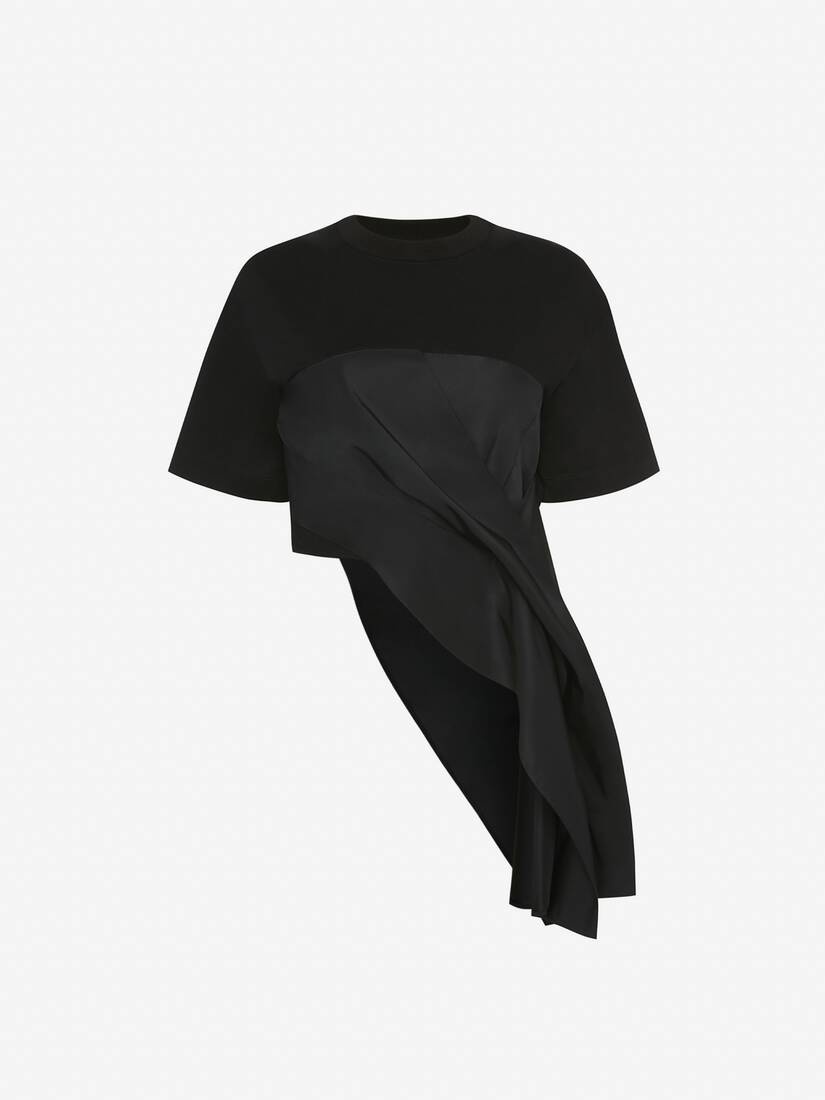 Black cropped cotton jersey T-shirt featuring a hybrid polyfaille bustier drape. Featuring a crew neck and finished with a side zip fastening. Product Details: • Made with organic cotton yarn Material:100% Cotton Product Code:733976QLAA61000