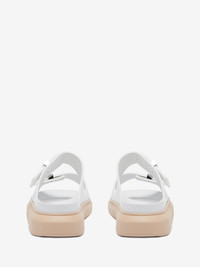 Rubber hybrid slide in ivory and blush featuring two straps with silver-finished bar slides, each engraved with an Alexander McQueen signature. The slide is finished with an oversized rubber sole. Product details - Round toe - Silver-finished hardware - Embossed Alexander McQueen signature on the upper - Oversized rubber sole - Sole height: 35mm / insole 15mm - Product code: 658063W4Q578791 - Made in Italy - Material: Plastic