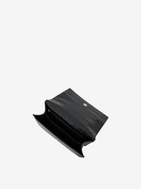 Black embossed croc calf leather Jewelled Satchel. The bag can be worn multiple ways: hand-held using the ring handle or by doubling up the straps. Alternatively, wear over the shoulder or cross body using the leather and chain straps. Product details - Dimensions: 24 x 14,5 x 8 cm / 9.4 x 5.7 x 3.1 inches - Gold<-finished four ring adornment encrusted with crystals - Two compartments and a flat zip pocket - Adjustable leather strap - Antique gold chain strap - Brass hardware with antique gold finishing - Black suede lining - Accommodates smartphones - Due to the appearance of the product, we recommend stowing it in your hold luggage when passing through airport security. For the same reason we recommend not taking the bag to public places, such as law courts and sports stadiums, where there may be security checks - Product code: 5541281HB0T1001 - Made in Italy