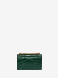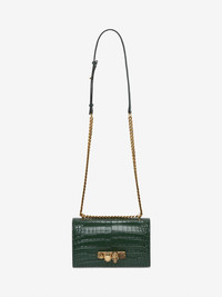 Shiny emerald green embossed croc calfskin leather Jewelled Satchel. This bag can be worn in multiple ways: carry it in your hand using the ring handle or by doubling up the strap. Alternatively, wear over the shoulder or across the body using the leather and chain strap. Product details - Dimensions: 24 x 14.5 x 8 cm / 9.4 x 5.7 x 3.1 inches - Gold four-ring embellishment encrusted with crystals - Two compartments and one flat zip pocket - Adjustable leather and chain strap - Antique gold chain strap - Brass hardware with antique gold finish - Suede-effect lining - Can accommodate a smartphone - Due to the appearance of the product, we recommend stowing it in your hold luggage when passing through airport security. For the same reason we recommend not taking the bag to public places, such as law courts and sports stadiums, where there may be security checks - Product code: 5541281HB003120 - Made in Italy - Material: 100% Calf Leather