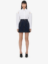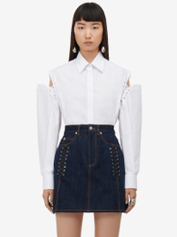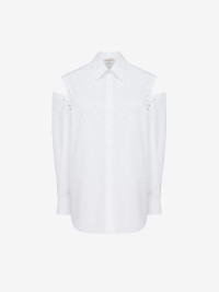 Cocoon shirt in optical white cotton poplin featuring slashed shoulders with silver metal eyelets and cotton laces. The shirt is finished with a concealed front button fastening. Product details - Point collar - Eyelet and lace detailing - Concealed front button fastening - Made with organic cotton yarn - Product code: 790908QAAAD9000 - Made in Italy