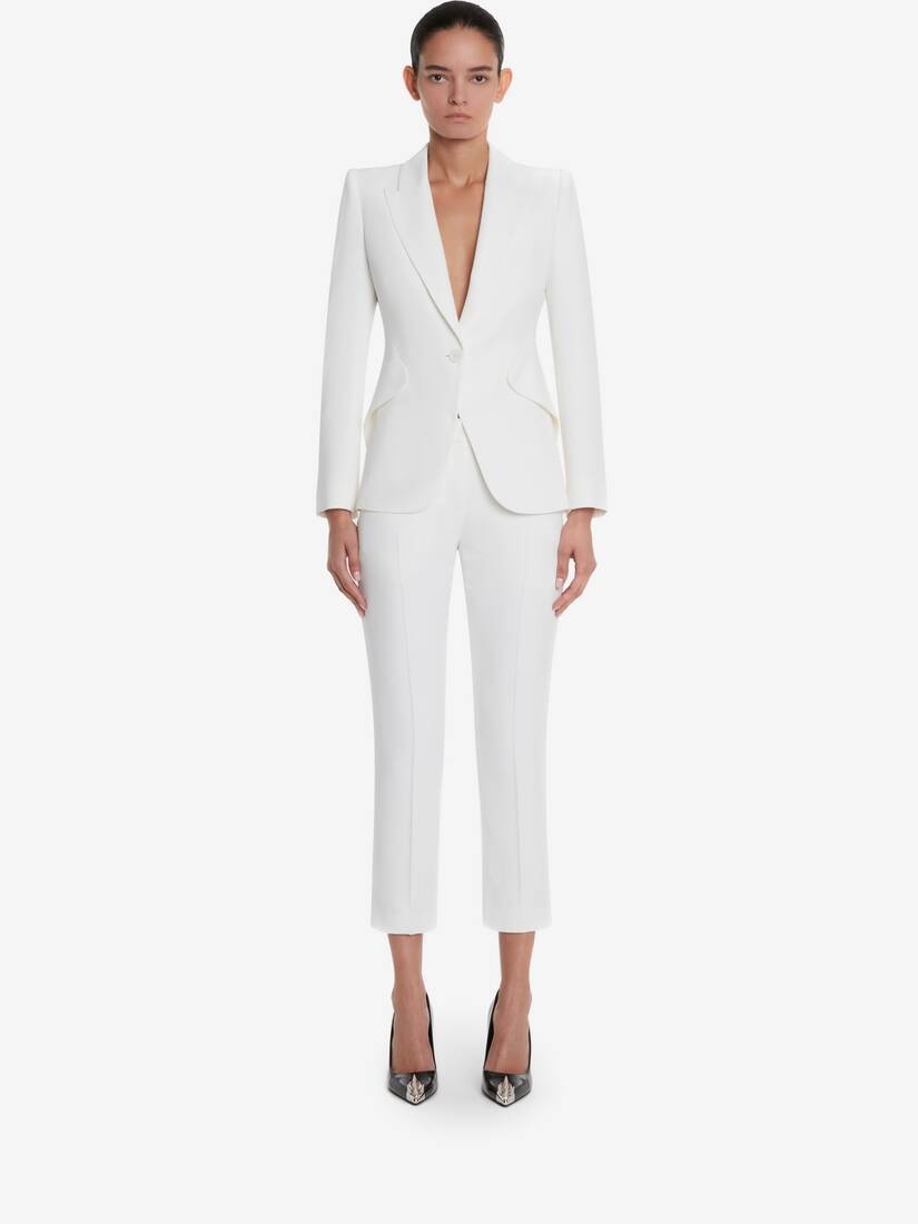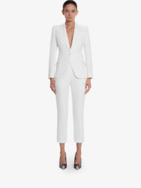 Women's Leaf Crepe Cigarette Trousers in Light Ivory
