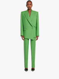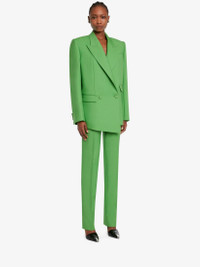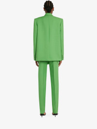 Acid green wool mohair cigarette trousers featuring a high waist, two side pockets and a buttoned welt pocket on the back. Finished with a concealed zip and hook fastening. Product Details: - Made with certified wool yarn Material:80% Wool, 20% Mohair Product Code:724750QJAC73024