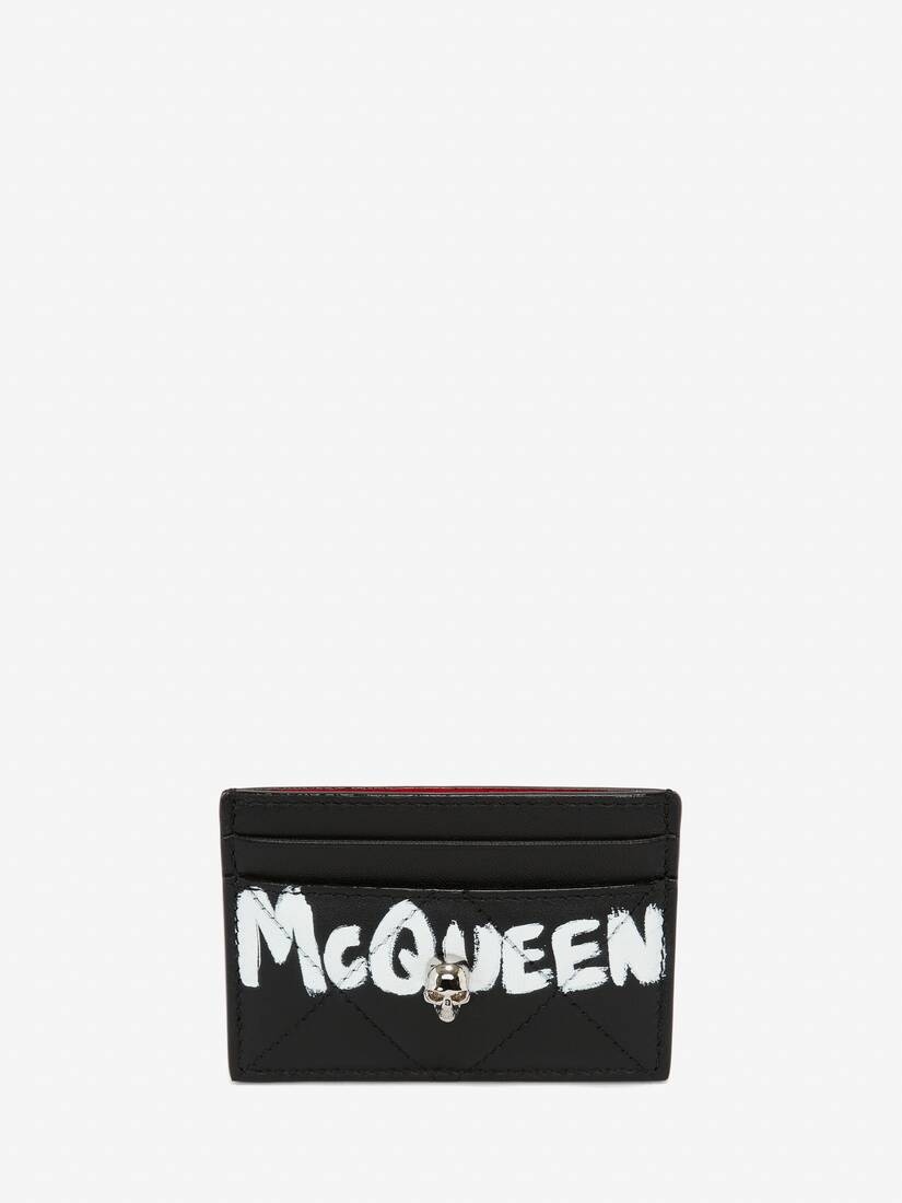 Women's McQueen Graffiti Card Holder in Black/white
