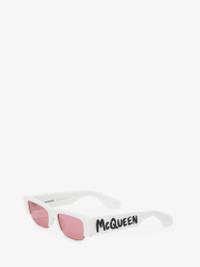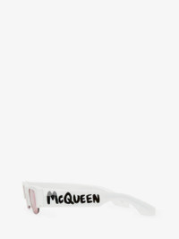 Women's McQueen Graffiti Slashed Sunglasses in White