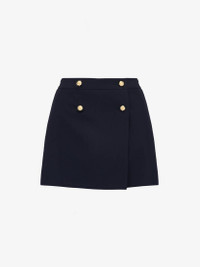 Military mini skirt in navy draped tailoring featuring enamelled Seal logo buttons. The skirt is finished with side pockets. Product Details: • Bumster / low waist • Side pockets • Button fastening • Fits true to size Material:77% Wool, 23% Cotton Product Code:752499QJACF4100