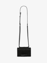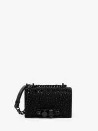 Mini Jewelled Satchel featuring all-over black crystal embellishment. This bag can be worn in multiple ways: carry it in your hand using the ring handle or by doubling up the strap. Alternatively, wear it over the shoulder or across the body using the leather and chain strap. Product Details: • Dimensions: 17.5 x 9.5 x 4 cm / 6.7 x 3.7 x 1.5 inches • Black•finished four ring adornment encrusted with Swarovski crystals • One main compartment and one card slot • Leather lining • Adjustable leather and chain strap • Black•finished chain strap • Accommodates smartphones • Due to the appearance of the product, we recommend stowing it in your hold luggage when passing through airport security. For the same reason we recommend not taking the bag to public places, such as law courts and sports stadiums, where there may be security checks Material:100% Calf Leather Product Code:7331731BLDA1000