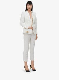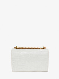 Shiny deep ivory embossed croc calfskin leather Jewelled Satchel. This bag can be worn in multiple ways: carry it in your hand using the ring handle or by doubling up the strap. Alternatively, wear over the shoulder or across the body using the leather and chain strap. Product details - Dimensions: 24 x 14.5 x 8 cm / 9.4 x 5.7 x 3.1 inches - Gold four-ring embellishment encrusted with crystals - Two compartments and one flat zip pocket - Adjustable leather and chain strap - Antique gold chain strap - Brass hardware with antique gold finish - Suede-effect lining - Can accommodate a smartphone - Due to the appearance of the product, we recommend stowing it in your hold luggage when passing through airport security. For the same reason we recommend not taking the bag to public places, such as law courts and sports stadiums, where there may be security checks - Product code: 5541281HB0T9006 - Made in Italy - Material: Calf leather