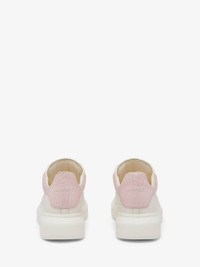 The Oversized Sneaker - Statement silhouette in off-white and crackled pink leather, with heel counter debossed with the McQueen logo. Finished with a chunky rubber sole. Product details - Round toe - Alexander McQueen logo - Contrasting heel counter - Oversized rubber sole - Additional pair of shoelaces included - Product code: 553770WIACU9050 - Made in Italy - Material: Calf Leather