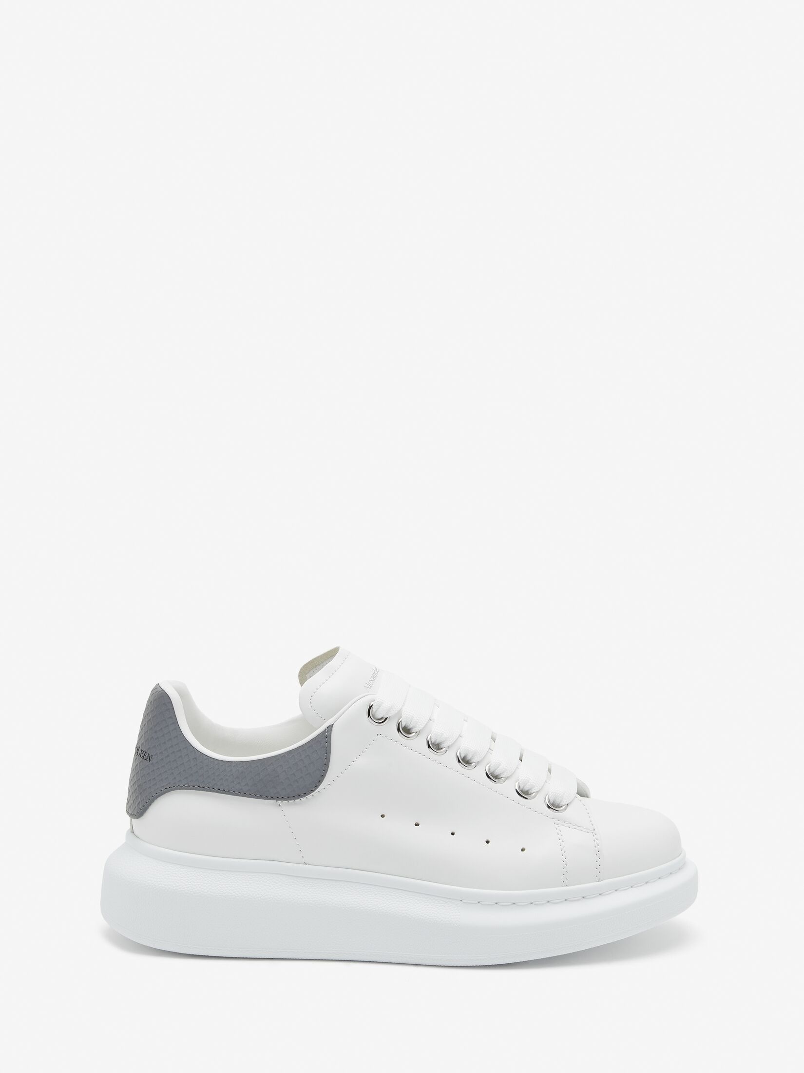 Presented in white calf leather, this Oversized Sneaker features a reflective snake-print heel counter. The sneaker is finished with the Alexander McQueen signature and a chunky rubber sole. Product details - Round toe - Alexander McQueen signature - Snakeprint heel counter - Oversized rubber sole - Additional pair of shoelaces included - To lessen our environmental impact and to reduce cotton consumption, we will no longer be providing a dust bag with our sneakers. - Product code: 718232WIEE79154 - Made in Italy