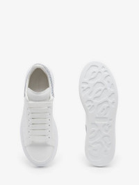 Presented in white calf leather, this Oversized Sneaker is detailed with a contrasting snake print heel counter. The sneaker is finished with the Alexander McQueen signature and a oversized rubber sole. Product Details: • Round toe • Alexander McQueen signature • Contrasting marine leather heel counter • Oversized rubber sole • Additional pair of shoelaces included • To lessen our environmental impact and to reduce cotton consumption, we will no longer be providing a dust bag with our sneakers. • The style fits true to size Material:100% Calf Leather Product Code:718139WIE838857