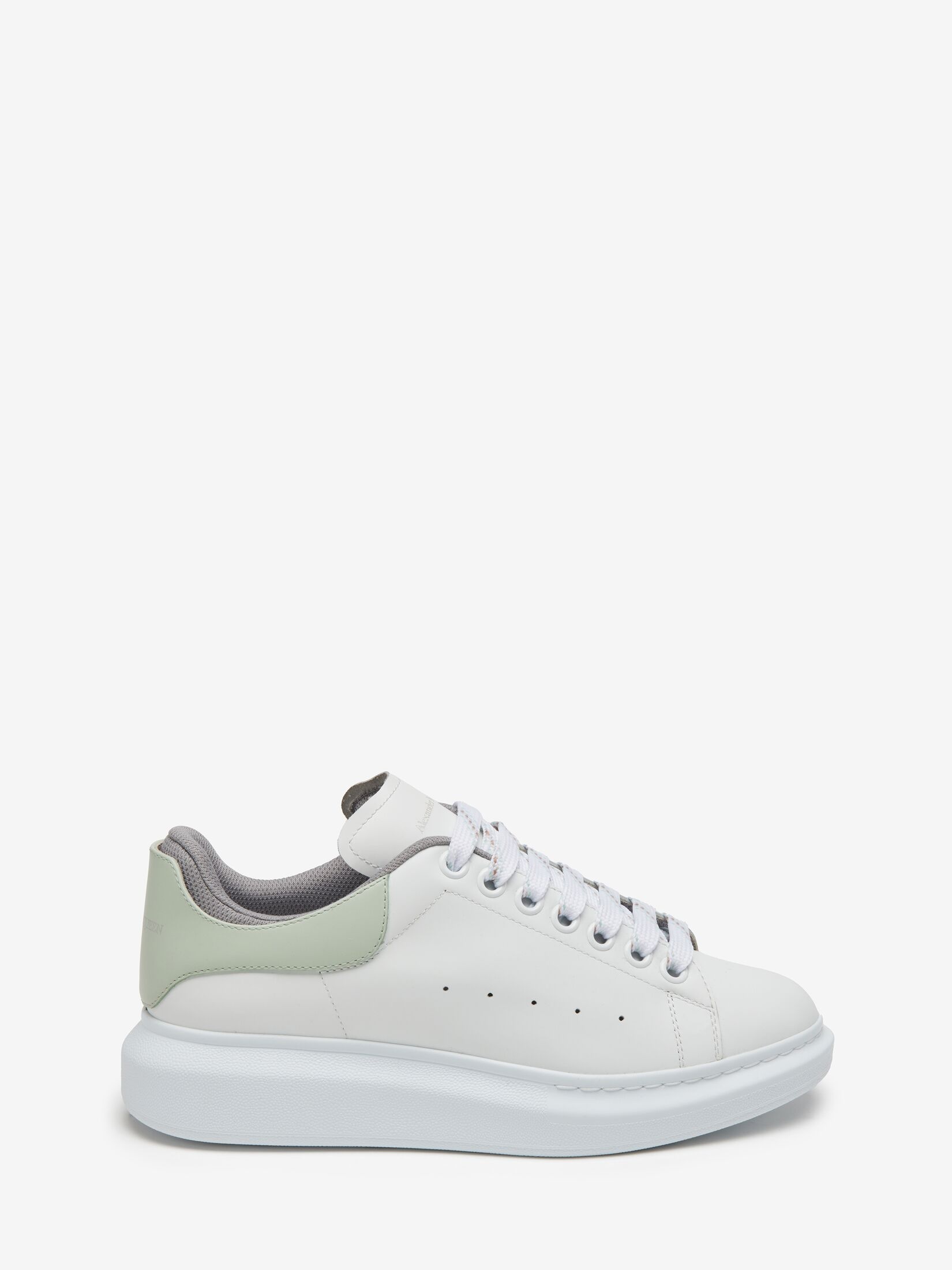 Presented in white calf leather, this Oversized Sneaker features a double heel counter in mint suede and cement summer lining. The sneaker is finished with the Alexander McQueen signature and a chunky rubber sole. Product details - Round toe - Alexander McQueen signature - Double heel counter - Oversized rubber sole - Additional pair of shoelaces included - Product code: 697103WIE968720 - Made in Italy