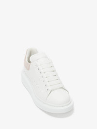 White smooth calf leather sneaker with a rounded toe and an oversized patchouli sole. The sneaker features large flat laces and are finished with an Alexander McQueen signature on the heel counter and tongue. Product Details: • Round toe • Alexander McQueen signature • Oversized rubber sole • Additional pair of shoelaces included • The style fits true to size Material:100% Calf Leather Product Code:553770WHGP79182