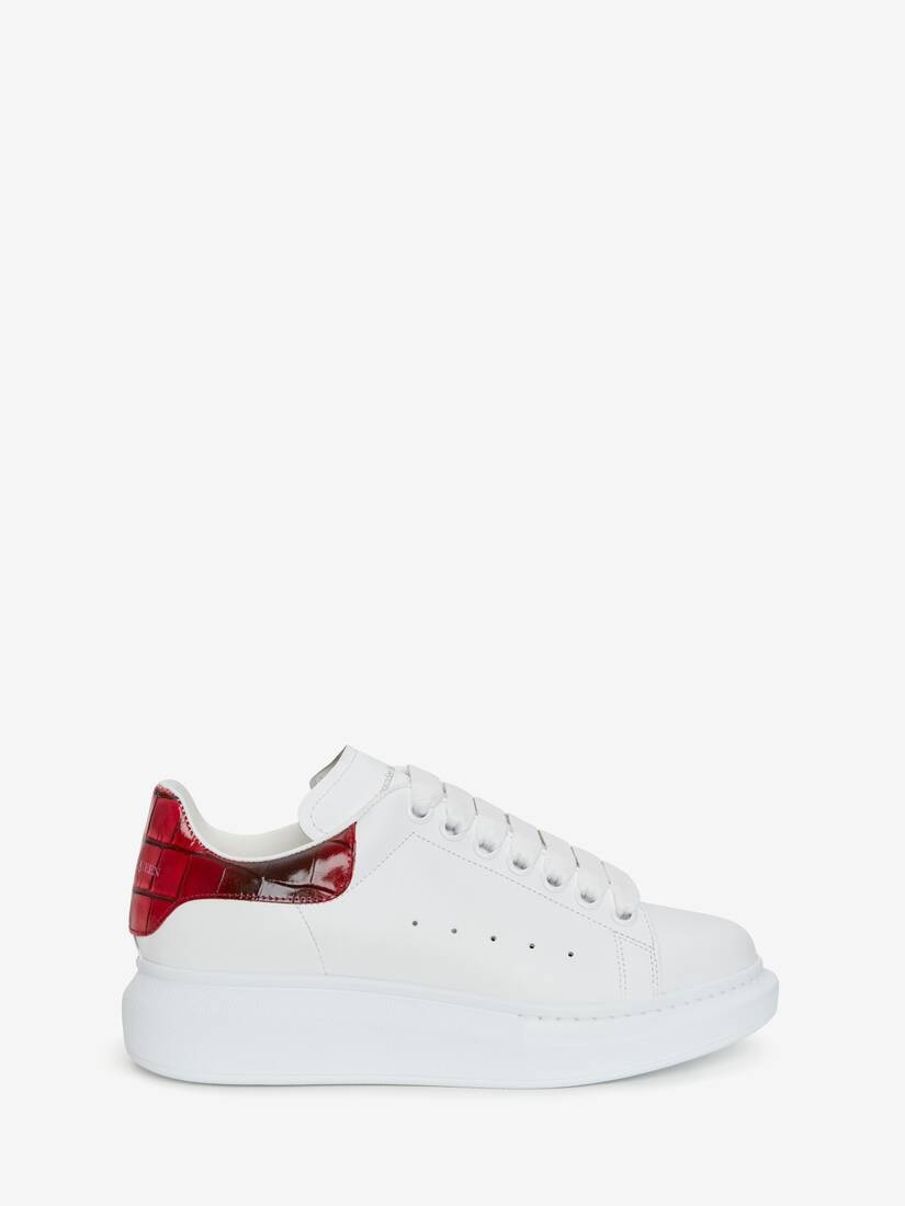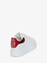 Crafted from white calf leather, this Oversized Sneaker is detailed with a welsh red croc-embossed heel counter. The style is finished with the Alexander McQueen signature and a chunky rubber sole. Product Details: • Round toe • Alexander McQueen signature • Contrasting croc-embossed heel counter • Oversized rubber sole • Additional pair of shoelaces included • To lessen our environmental impact and to reduce cotton consumption, we will no longer be providing a dust bag with our sneakers. Material:100% Calf Leather Product Code:718233WIDJA9716