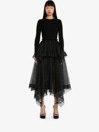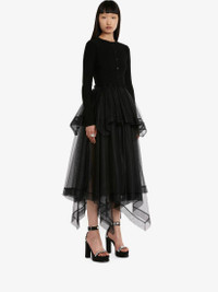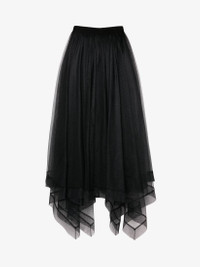 Black Paris net midi skirt featuring a high waist and a handkerchief hem. Finished with a back zip fastening. Material:100% Polyamide Product Code:734276QEACR1000