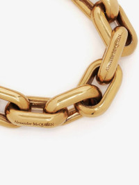 Light antique gold-finished chain bracelet inspired by the iconic House’s Peak bag. The bracelet features an invisible clasp closure and is finished with an engraved Alexander McQueen signature. Product details - Eco brass hardware - Light antique gold finish - Invisible clasp closure - Available in two sizes - Total length when closed: 18.5cm (size S), 20.5cm (size M) - Product code: 780963J160K8500 - Made in Italy