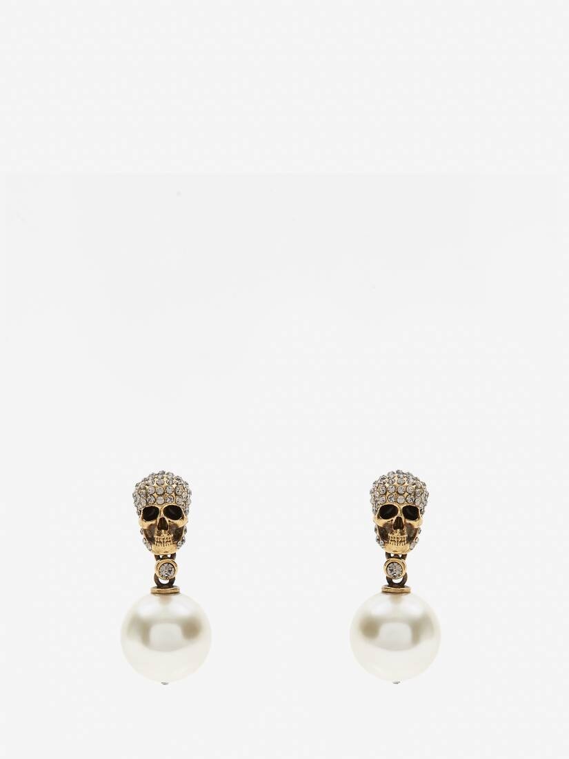 Women's Pearl Pave Skull Earrings in Antique Gold