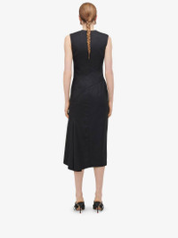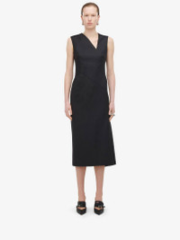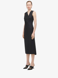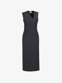 Midi dress in grey wool pinstripe featuring an off-centre V-neck and a diagonal panel in matching fabric. The dress is finished with a back zip fastening. Product details - Off-centre V-neck - Back zip fastening - Sleeveless - Product code: 798227QJAEI1124 - Made in Italy