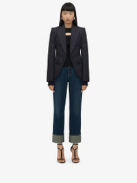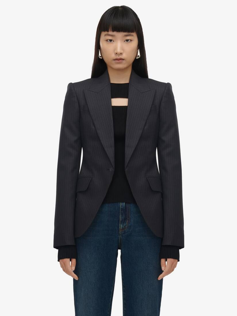 Single-breasted jacket in grey wool pinstripe featuring peak lapels and side flap pockets. The jacket is finished with a single button fastening. For the full look, wear with the matching trousers. Product details - Peak lapels - Slit pocket on the chest - Single button fastening - The style fits true to size - Product code: 798500QJAEI1124 - Made in Italy