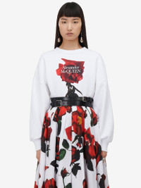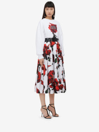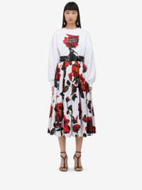 Pleated midi skirt in optical white cotton poplin featuring a red, green and black Tudor Rose print. The skirt is finished with a back zip fastening. Product details - High waist - Back zip fastening - Midi length - Product code: 684284QDAOL9000 - Made in Italy