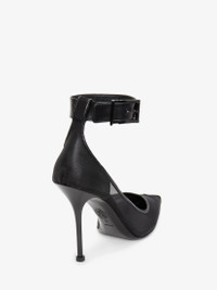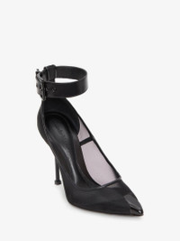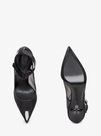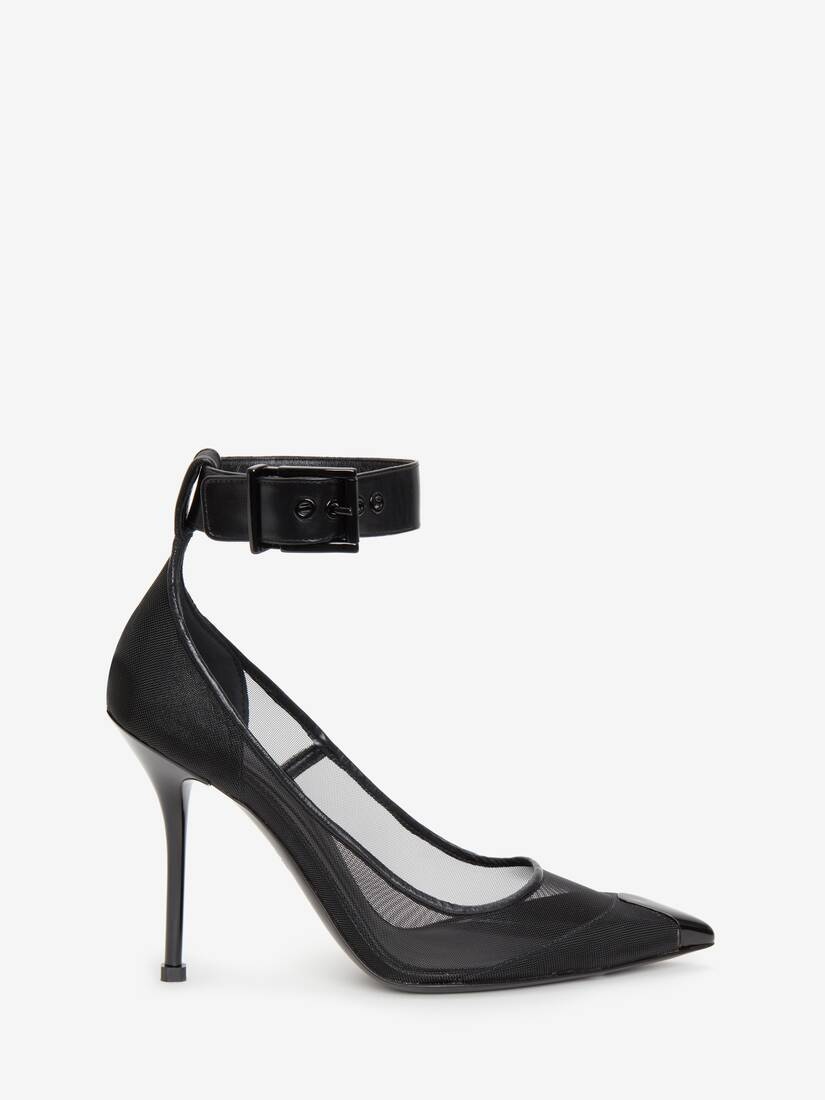 Presented in black mesh, this pump is characterised by a pointed toe silhouette detailed with a tonal punk toe cap. The style is finished with an ankle buckle fastening and a stiletto heel. Product Details: • Pointed toe • Ankle buckle fastening • Tonal hardware • Leather sole • Stiletto heel • Heel height: 105mm Material:100% Polyamid Product Code:744476W4AB21000
