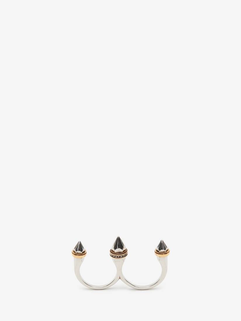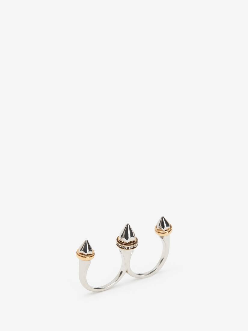 Antique silver and gold-finished double-ring featuring punk stud and Swarovski crystal detailing. Eco brass hardware. Available in three sizes. Material:100% Brass Product Code:718257J160Z7590