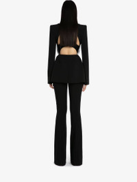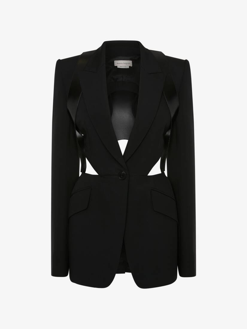 Black sartorial wool one-button jacket featuring leather harness and slashed detailing. The jacket has peak lapels, two flap pockets at the sides and a single button fastening. Product Details: • Fits true to size Material:100% Wool Product Code:733093QZAH91000