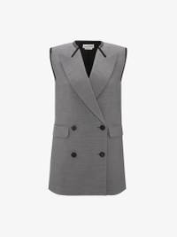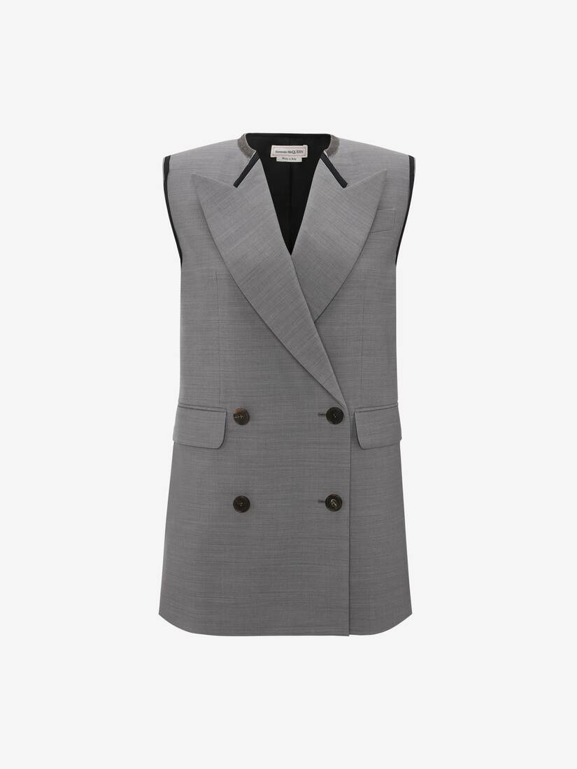 Women's Sleeveless Double-breasted Wool Jacket in Mid Grey Melange