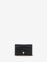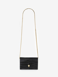 Black shiny embossed croc calf leather Small Skull Bag detailed with a gold-finished skull. Product details - Dimensions: 19 x 13 x 5 cm / 7.4 x 5.1 x 1.9 inches - Snap button fastening - One central compartment and one card slot - Gold chain strap - Can accommodate a smartphone - Product code: 8552911HB0G1001 - Made in ITALY - Material: 100% Calf Leather