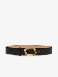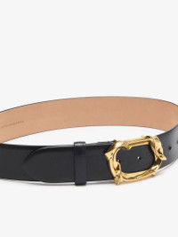 Black smooth calf leather hip belt featuring an antique gold-finished, finely engraved Snake buckle. Brass hardware. Product details - Width: 40mm - Brass hardware with antique gold finishing - Product code: 7975331BR0T1000 - Made in Italy