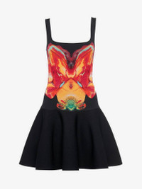 Women's Solarised Orchid Jacquard Mini Dress in Black/red/yellow