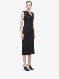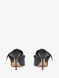 Black calf leather mule featuring a pointed toe silhouette and punk-inspired thin leather straps detailed with a silver metal buckle. The mule has a tonal lacquered pin heel finished with a lust red tip. Product details - Pointed toe - Lacquered pin heel - Leather sole - Heel height: 90mm - Product code: 797598WIFD71037 - Made in Italy