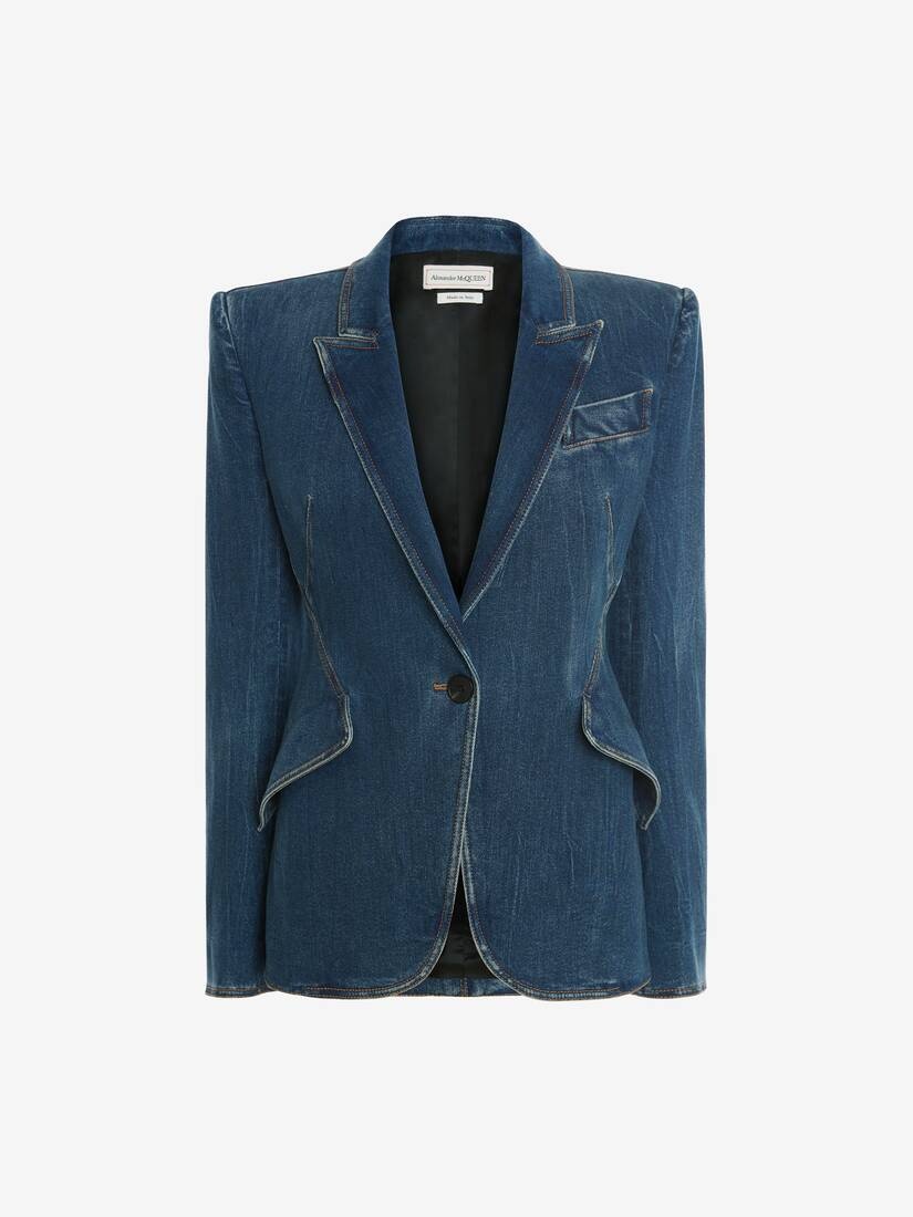 Denim Tailored Jacket in Dark Blue Wash