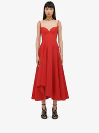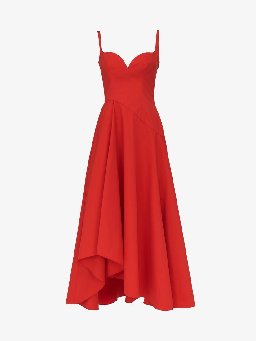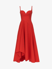 Midi dress in lust red compact cotton poplin featuring a sweetheart neckline, an asymmetric waistline and a gathered skirt. The dress is finished with a back zip fastening. Product details - Sweetheart neckline - Gathered skirt - Concealed back zip fastening - The style fits true to size - Made with organic cotton yarn - Product code: 797797QAABC6610 - Made in Italy - Material: 100% Cotton