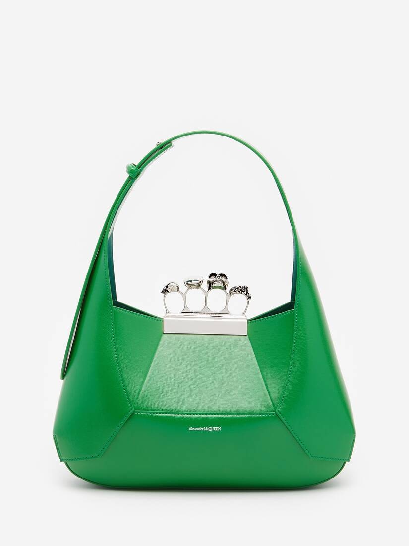 Bright green smooth calfskin leather Jewelled Hobo featuring an antique silver-finished handle adorned with Swarovski-encrusted rings. The unique silhouette of the Jewelled Hobo is inspired by the faceted stone that sits on the Knuckle, and features leather panels that are cut and re-assembled together. This bag can be worn either hand-held or over the shoulder. Product Details: • Dimensions: 30 x 18 x 13 cm / 11.8 x 7 x 5 inches • Adjustable shoulder strap: 18 - 28cm / 7 - 11 inches • Magnetic fastening • Silver-finished handle adorned with Swarovski-encrusted rings • One internal card slot • Internal leather flap pouch with a leather-covered press stud fastening • Brass hardware with antique silver finishing • Tonal lining • Due to the appearance of the product, we recommend stowing it in your hold luggage when passing through airport security. For the same reason we recommend not taking the bag to public places, such as law courts and sports stadiums, where there may be security checks. Material:100% Calf Leather Product Code:731135DYTAB3510