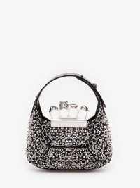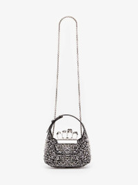 Black calfskin leather Jewelled Hobo featuring an all-over crystal and stud embellishment and an antique silver-finished handle adorned with crystal-encrusted rings. The unique silhouette of the Jewelled Hobo is inspired by the faceted stone that sits on the Knuckle, and features leather panels that are cut and re-assembled together. This bag can be worn either hand-held or over the shoulder or across the body with its detachable chain. Product details - Dimensions: 20 x 12 x 8 cm / 7.8 x 4.7 x 3.1 inches - Strap drop: 52 cm / 20.4 inches - Silver-finished handle adorned with crystal-encrusted rings - Magnetic fastening - Detachable chain strap - Brass hardware with antique silver finishing - Leather lining - Due to the appearance of the product, we recommend stowing it in your hold luggage when passing through airport security. For the same reason we recommend not taking the bag to public places, such as law courts and sports stadiums, where there may be security checks. - Product code: 731136D78EF1000 - Made in Italy - Material: Calf Leather