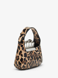 All-over Leopard print Mini Jewelled Hobo made from an innovative vegan material combining quality and durability, featuring an antique silver-finished handle adorned with crystal-encrusted rings.The unique silhouette of the Jewelled Hobo is inspired by the faceted stone that sits on the Knuckle, and features leather panels that are cut and re-assembled together. This bag can be worn either hand-held or over the shoulder or across the body with its detachable chain. Product details - Dimensions: Length 20 x Height 12 x Depth 8cm / 7.8 x 4.7 x 3.1 inches - Strap drop: 52cm / 20.4 inches - Silver-finished handle adorned with crystal-encrusted rings - Magnetic fastening - Detachable chain strap - Brass hardware with antique silver finishing - Contrasting fabric lining that imitates leather - Due to the appearance of the product, we recommend stowing it in your hold luggage when passing through airport security. For the same reason we recommend not taking the bag to public places, such as law courts and sports stadiums, where there may be security checks. - Product code: 7311361LYEN8490 - Made in Italy - Material: Polyurethane, Viscose