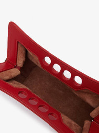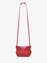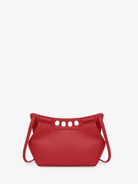 Inspired by the sharp and structured shoulders of the tailoring silhouettes, this mini Peak bag is handcrafted from welsh red calfskin leather with a curve-shaped magnetic frame, juxtaposed with a soft body. The bag can be worn either over the shoulder or across the body using the adjustable leather strap. Product details - Dimensions: Length 22.5 x Heigth 16 x Depth 9 cm / 8.8 x 6.2 x 3.5 inches - Strap drop: 45-65 cm / 17.7-25.5 inches - Magnetic fastening - Adjustable leather strap - Brass hardware with antique silver finishing - Contrasting suede lining - Product code: 7759081BLLI6309 - Made in Italy - Material: Calf Leather