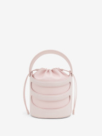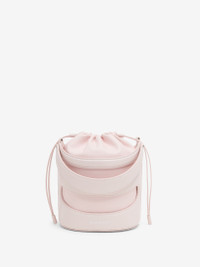 Venus pink calfskin leather Rise Bucket featuring a structured harness-like cage and a tonal soft nappa pouch. The bag can be worn either hand-held with the leather handles or cross the body, using the adjustable and detachable leather strap. Product details - Dimensions: Length 16 x Height 18 x Depth 14.5cm / 6.2 x 7 x 5.7 inches - Strap drop: 35-55cm / 13.7-21.6 inches - Drawstring fastening - Brass hardware with silver finishing - One main compartment - Lambskin leather lining - Detachable and adjustable strap - Product code: 7871261VPHI9813 - Made in Italy
