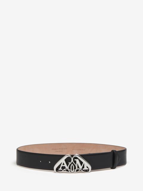 Black smooth calf leather belt featuring a gold-finished Seal buckle. Eco brass hardware. Product details - Width: 40mm - Eco brass hardware with gold finishing - Product code: 7679211BR0T1000 - Made in Italy