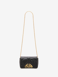 Black Mini Seal bag handcrafted from padded lambskin leather, featuring an exploded Seal Logo and a gold-finished cut-out metal Seal closure. The Mini Seal bag plays with curves and rounded edges. This bag can be worn across the body using its woven metal chain strap. Alternatively, it can be worn over the shoulder by doubling the chain strap or hand-held by removing the detachable chain strap. Product details - Dimensions: Length 22 x Height 13 x Depth 5 cm / 8.6 x 5.1 x 1.9 inches - Chain strap drop: 2355 cm / 921.6 inches - Metal Seal fastening - One main compartment and a flat pocket - Tonal leather lining - Detachable goldfinished chain strap - Product code: 7770111BLE11000 - Made in Italy