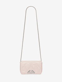 Clay Mini Seal bag handcrafted from padded lambskin leather, featuring an exploded Seal logo and a gold-finished cut-out metal Seal closure. The Mini Seal bag plays with curves and rounded edges. This bag can be worn across the body using its woven metal chain strap. Alternatively, it can be worn over the shoulder by doubling the chain strap or hand-held by removing the detachable chain strap. Product details - Dimensions: Length 22 x Heigth 13 x Depth 5 cm / 8.6 x 5.1 x 1.9 inches - Chain strap drop: 23-55 cm / 9-21.6 inches - Metal Seal fastening - One main compartment - Tonal leather lining - Detachable gold-finished chain strap - Product code: 7770111BLE25704 - Made in Italy