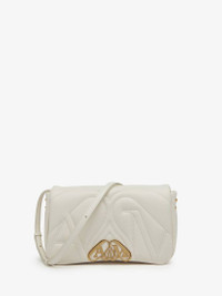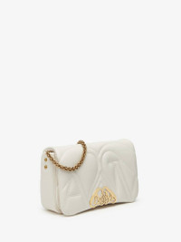 Soft Ivory Small Seal bag handcrafted from padded lambskin leather, featuring an exploded Seal logo and gold-finished cut out metal Seal closure. The Small Seal bag plays with curves and rounded edges. This bag can be worn over the shoulder with its woven metal chain strap. Alternatively, it can be worn cross the body with its adjustable leather strap. Both straps are detachable. Product Details: • Dimensions: 28 x 16 x 6 cm / 11 x 6.2 x 2.3 inches • Cross the body adjustable leather strap drop: 55cm / 21.6 inches • Chain shoulder strap drop: 25 cm / 9.8 inches • Both straps are detachable • Metal Seal fastening • One main compartment • Tonal leather lining • Antique gold-finished chain and leather strap Material:100% Lambskin Product Code:7573751BLE19210