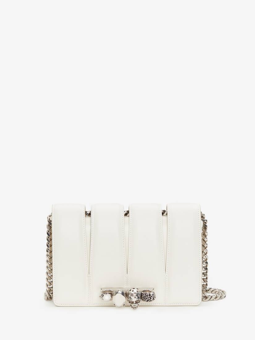 The Slash bag in Soft ivory leather. The outside flap features cut-out details inspired by the silhouettes of the tailoring and is handcrafted from soft lambskin leather. The body of the bag and the second flap, which closes with a press stud, are handcrafted from calfskin leather. Finished with a handle adorned with Swarovski-encrusted rings. This bag can be worn over the shoulder using the antique silver-finished chain strap. Product Details: • Dimensions: 23.5 x 15,5 x 7cm / 9 x 6 x 2.7 inches • Strap drop: 30cm / 11.8 inches • Silver-finished four ring adornment encrusted with Swarovski crystals • Magnetic press-stud fastening • Flat zip pocket and card slot Antique silver chain shoulder strap • Brass hardware with antique silver finishing • Contrast nappa lining • Accommodates smartphones • Due to the appearance of the product, we recommend stowing it in your hold luggage when passing through airport security. For the same reason we recommend not taking the bag to public places, such as law courts and sports stadiums, where there may be security checks Material:70% Calf Leather, 30% Lambskin Product Code:732794DYTCB9210