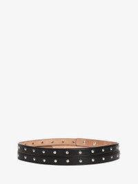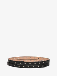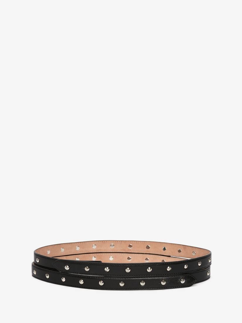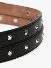 Black calfskin leather double belt embellished with silver-finished studs. Press stud fastening. Product Details: - Width: 40mm Material:100% Calf leather Product Code:7186881BREE1000