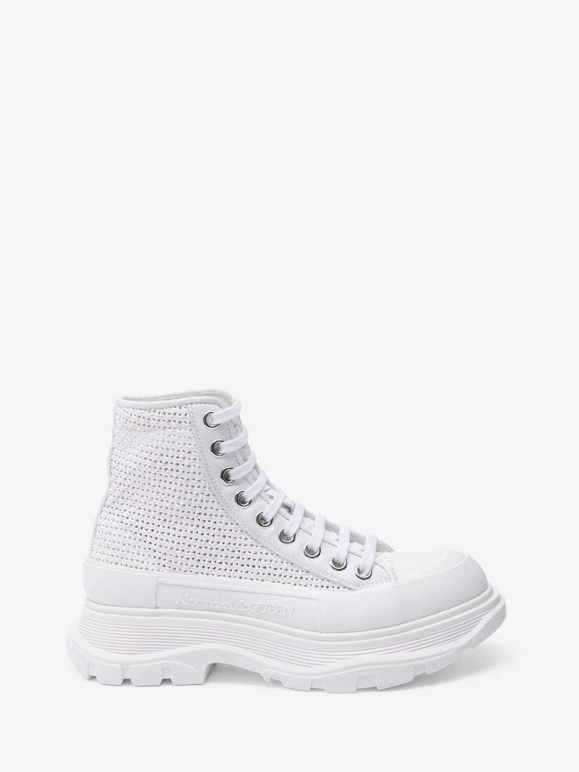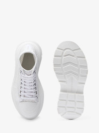 Presented in white raffia with nappa leather trims, this Tread Slick boot features a textured rubber wrap and a tonal Alexander McQueen signature. The boot is finished with a lightweight oversized rubber tread sole. Product Details: • Round toe • Lace-up closure • Textured rubber wrap • Signature ribbon on the back • Oversized rubber tread sole • Sole height: 45mm • Additional pair of shoelaces included • The style fits true to size Material:74% Polyethilene, 25% Nylon Product Code:755632W4WA49348